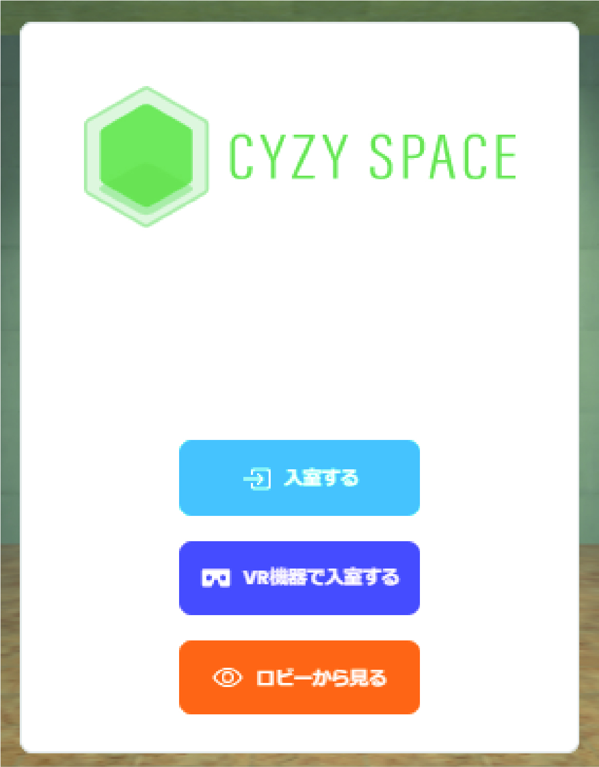「入室する」「VR機器で入室する」「ロビーから見る」 を選択して入室してくだ さい。 ※一度に閲覧できる人数に制限がありますので、アクセスできない場合は時間をおいて再度アクセスしてください。 |