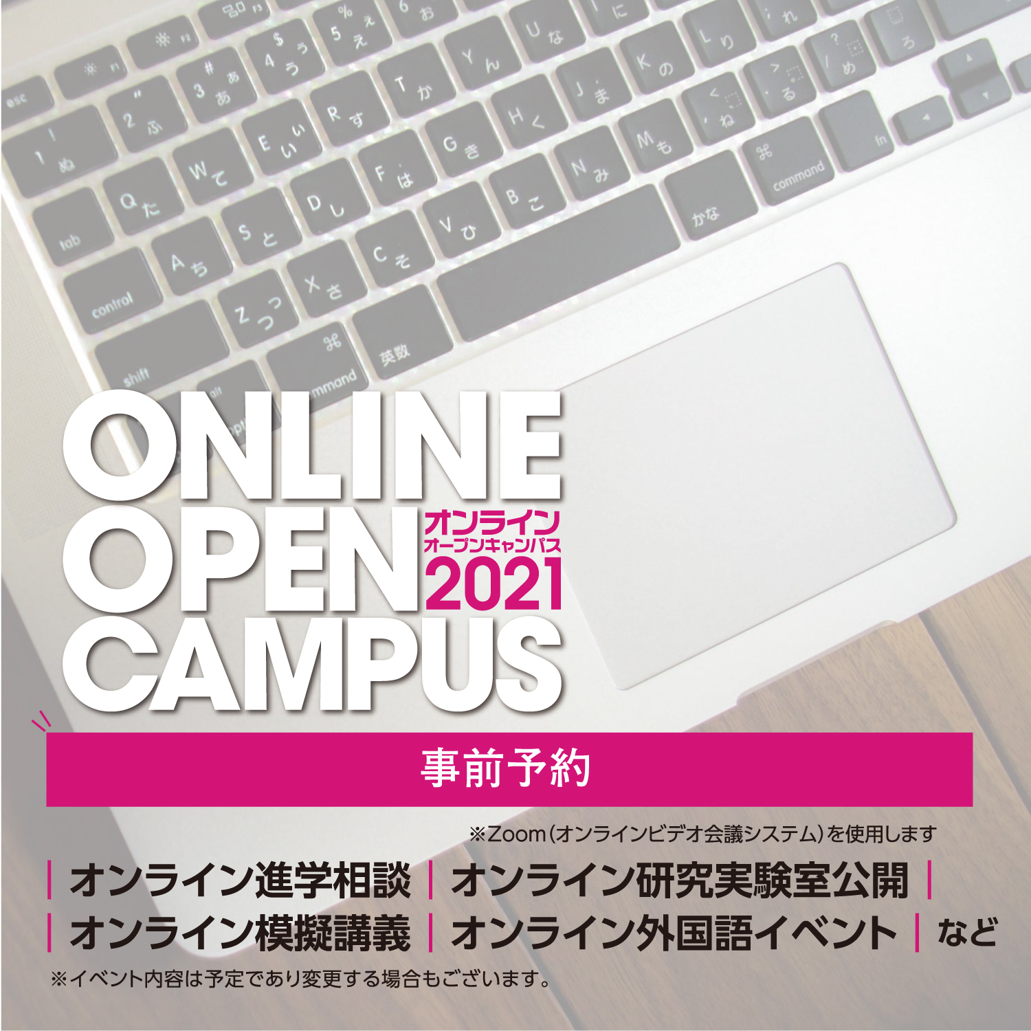 ZOOM(オンラインビデオ会議システム)を利用して、各学科単位で進学相談・模擬講義・研究実験室公開を行います。また高圧力蛋白質研究センターの研究実験室公開やBOST Language Spaceによる外国語(英語)イベント、学生とZOOMチャットもあるので、希望する学科や内容・時間を事前に予約して6月6日当日、オンラインで参加してね。
